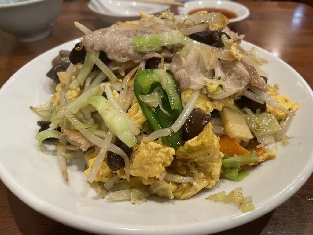 餃子2皿(焼・水)、ザーサイ、キクラゲとたまごの炒め物(このたまごの香ばしさは中華鍋でしか出ない)、半チャーハン……と、この辺りでお腹いっぱいになってしまった。まだまだメニューは続いており、もっと食べたいものが控えていたけど今日はここでギブアップ。残念……がっている僕にモリシマ君が言う。