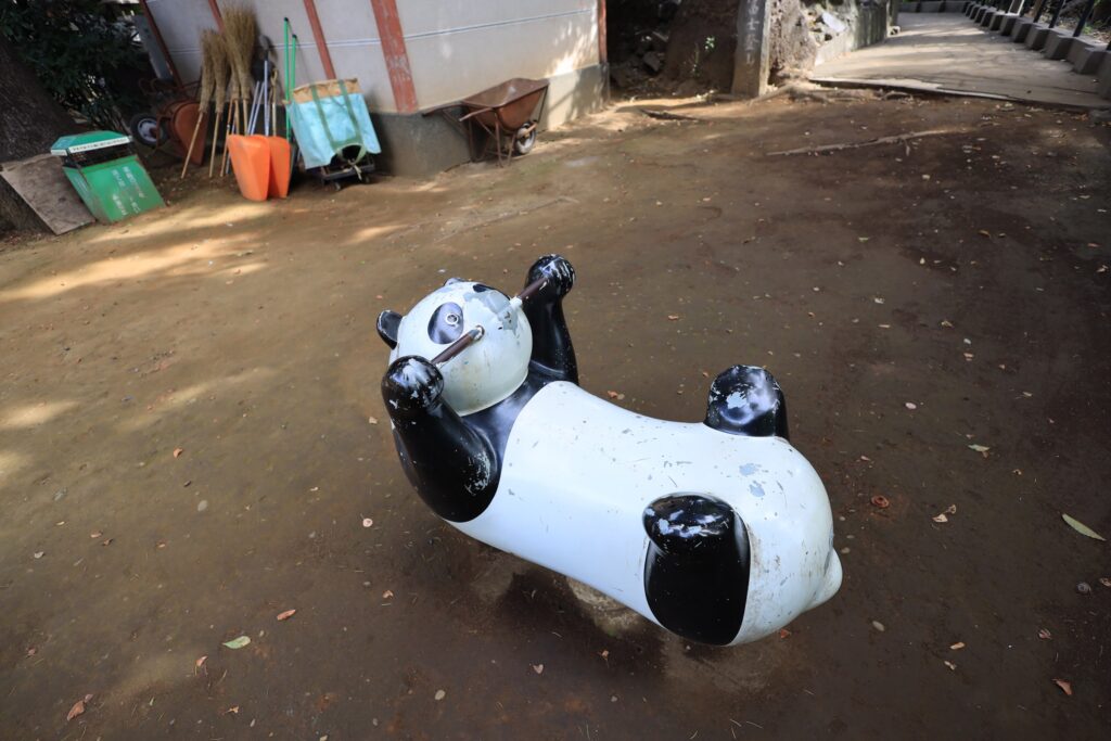 ところで、境内の小さな公園にあったパンダのライド、「パンダに乗る」という概念を少し崩された。